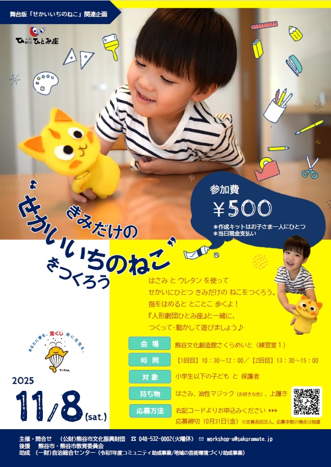人形劇団ひとみ座ワークショップ「ウレタンで自分だけの『せかいいちのねこ』をつくろう!」 【舞台版「せかいいちのねこ」関連企画】