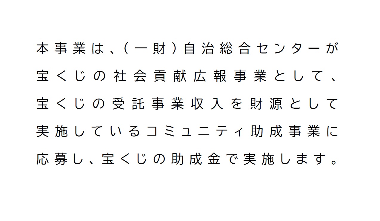 助成:(一財)自治総合センター(令和7年度コミュニティ助成事業/地域の芸術環境づくり助成事業)